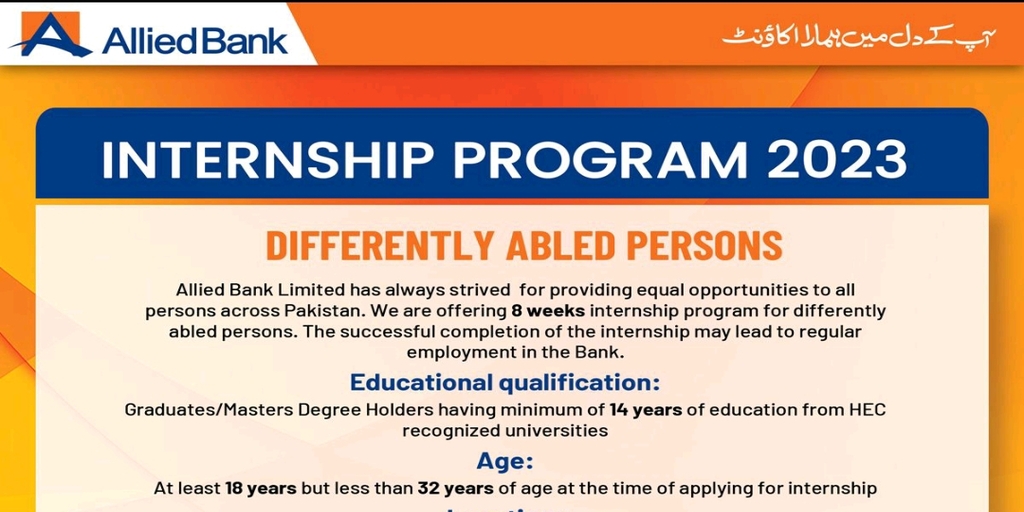 Allied Bank Internship Program 2023 for Differently Abled Persons
