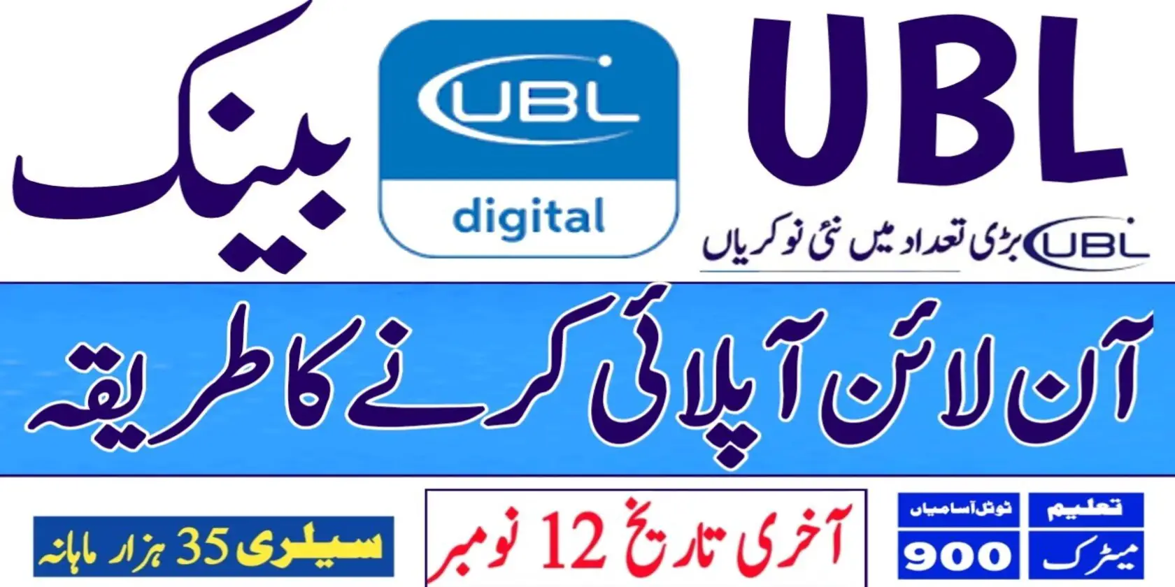 UBL Jobs for Matric  Pass Students Across Pakistan. UBL (United Bank Limited) hiring Matric Pass Candidates for Cash Officers Positions across Pakistan Branches of UBL (United Bank Limited). UBL Jobs for Matric Pass Candidates/ Students is an excellent career opportunity to start their professional career in the leading Commercial Bank of Pakistan. UBL (United Bank … Read more