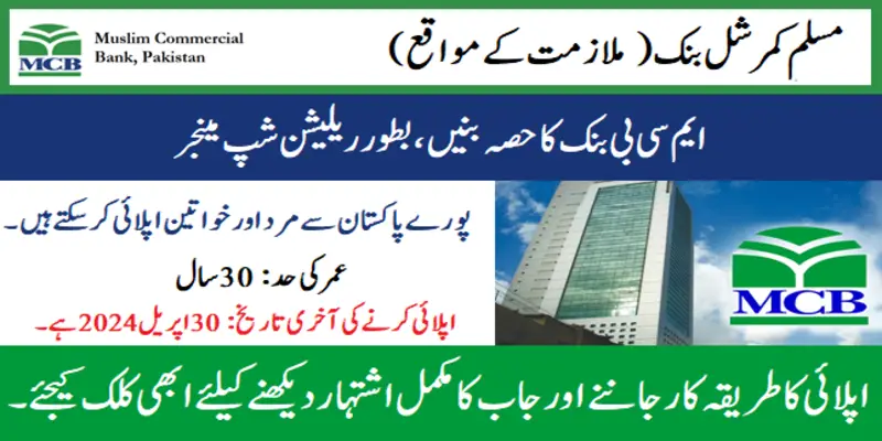 MCB Relationship Manager Jobs 2024 – All over Pakistan Online Apply