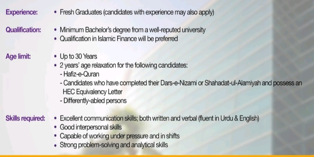 Meezan Bank Call Center Officers Eligibility Criteria: