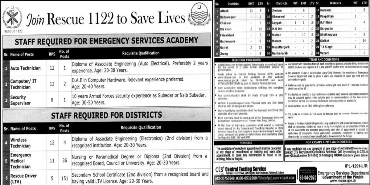Punjab Rescue 1122 Latest Jobs 2025 Advertisement