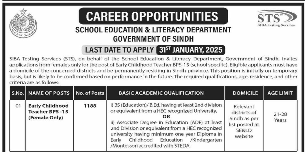 New Early Childhood Teachers (BPS-15) Jobs 2025 School Education and Literacy Department Jobs 2025 Latest Advertisement is announced by the Government of Sindh. Early Childhood Teachers (BPS-15) Job Opportunities are open now and the application submission process is also started. Desirous candidates may submit online applications through the STS website. School Education and Literacy Department … Read more