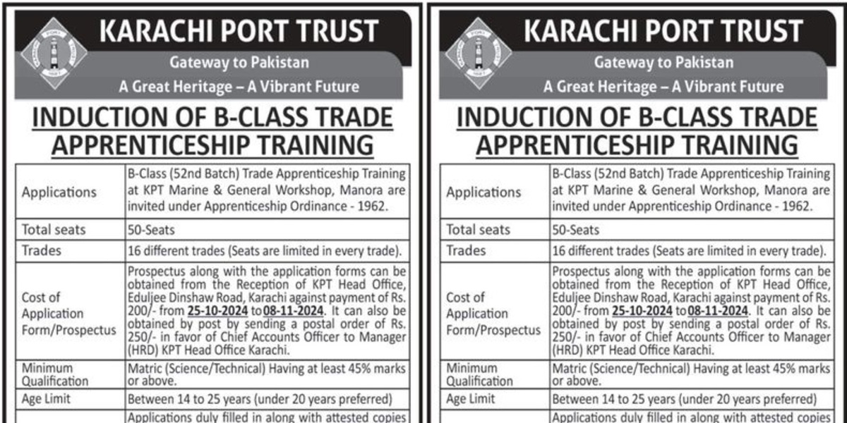 Karachi Port Trust KPT Apprenticeship Program 2024