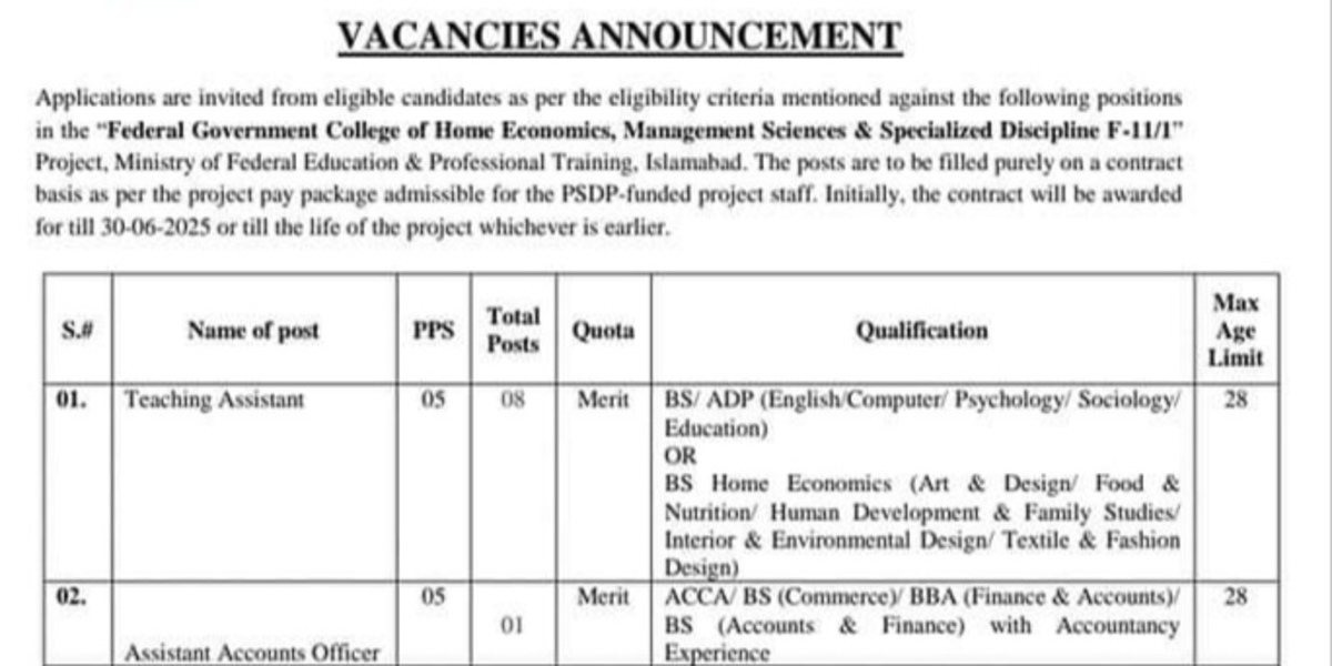 Federal Government College Teaching & Non Teaching Staff Jobs 2024
